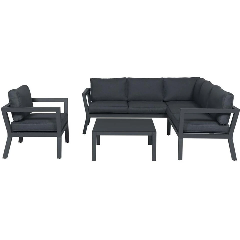 Het frame van de loungeset is van aluminium en is voorzien van een poedercoating. Deze coating zorgt voor een stoot- en kras vaste laag. Deze coating in de kleur carbon black zorgt voor een luxe uitstraling van de San Luis loungeset. Het aluminium is eenvoudig met een zachte doek schoon te maken en een sopje van groene zeep. De loungeset kan eventueel uitgebreid worden met extra fauteuils of een bijzettafel.
